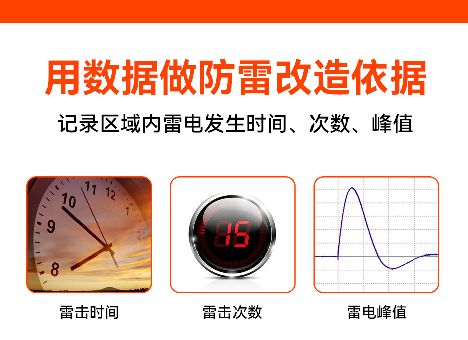 - 產(chǎn)品功能:記錄自然雷電峰值、時間、極性、次數(shù)