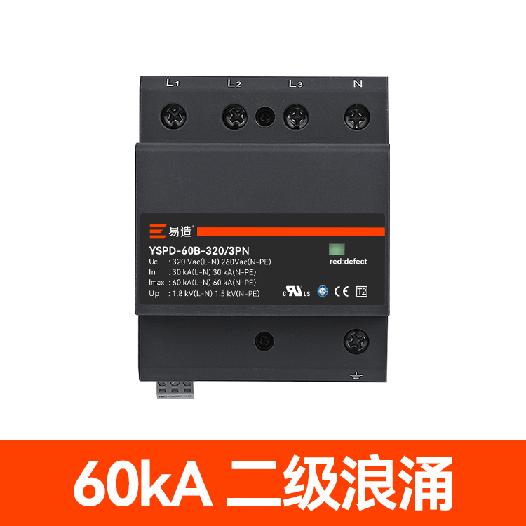 易造二級60kA小體積大通流浪涌保護器,適用于國內外各種供配電系統的單相和三相保護,帶本地和遠程告警功能,安裝簡單、維護方便,可用于2000米以上的高海拔地區。