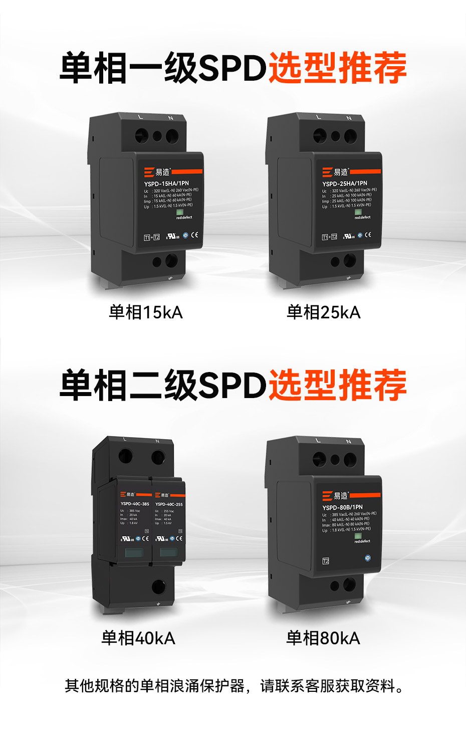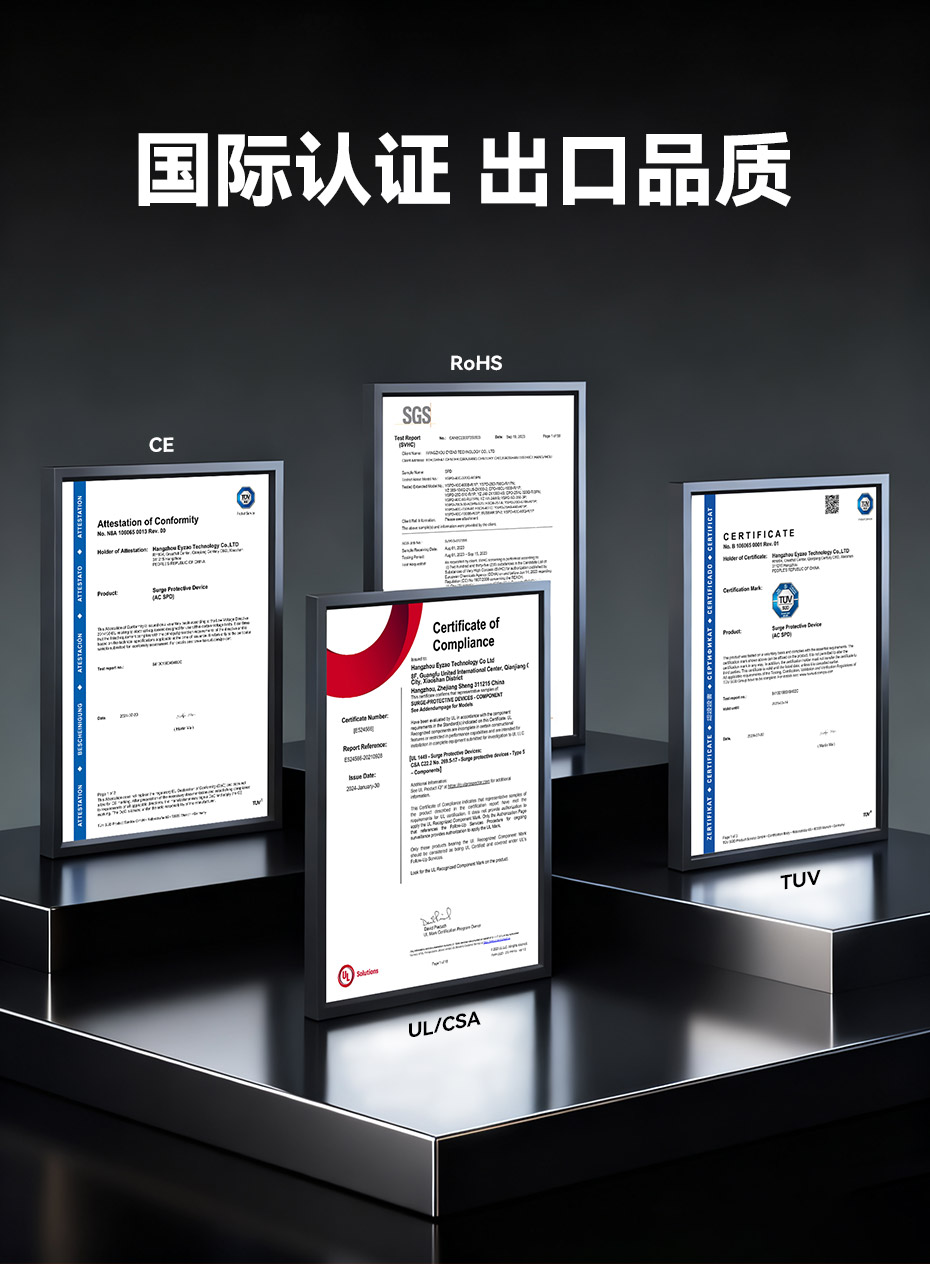 易造T1級、T2級單相浪涌保護器,規(guī)格型號齊全,擁有UL、TUV、CE、CQC等國內(nèi)國際質(zhì)量認證,符合全球市場的最高安全和RoHS歐盟環(huán)保標準,可替代進口品牌SPD,支持出口。