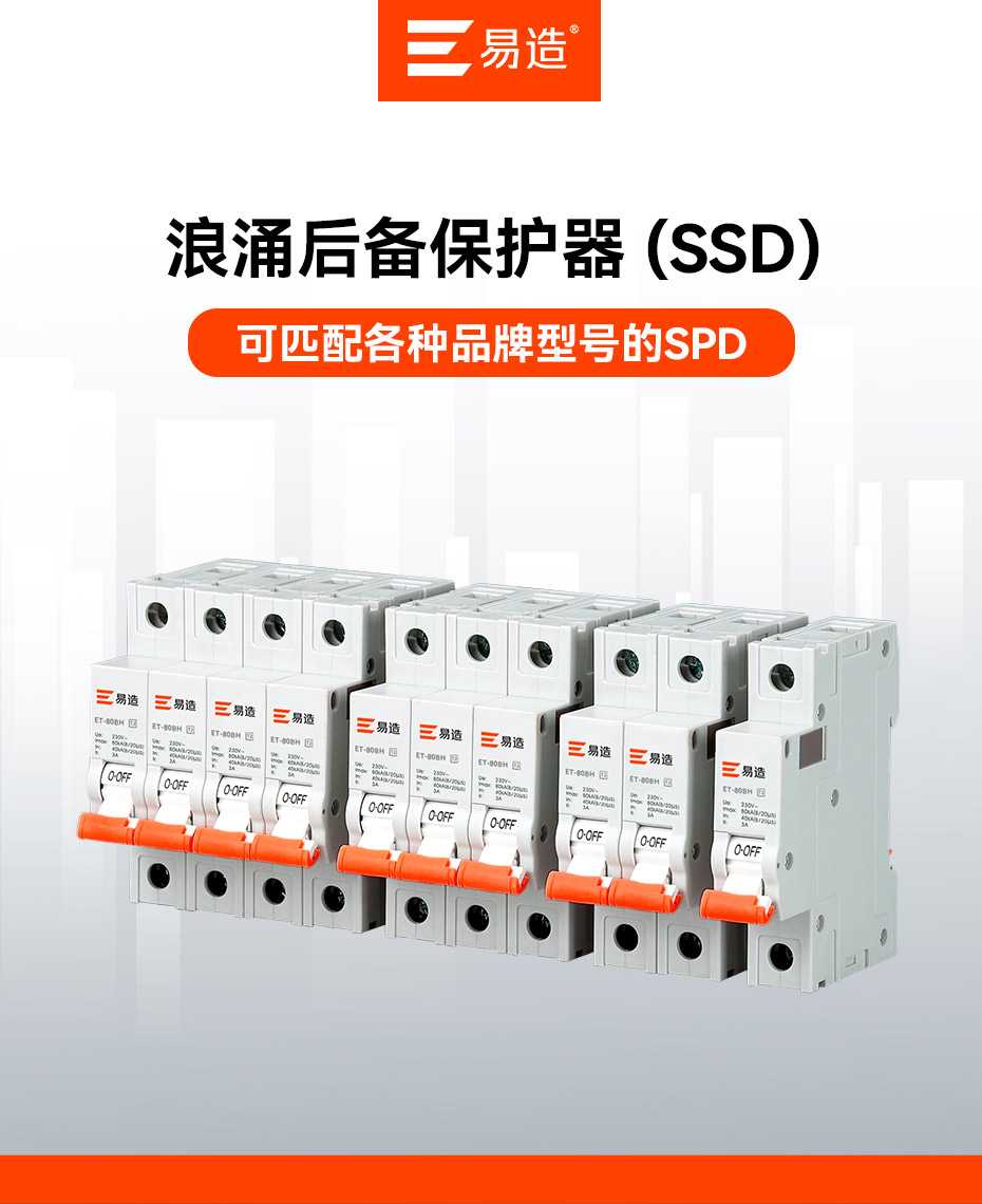 易造后備保護(hù)器可匹配低壓配電系統(tǒng)中任何型號的SPD,具有小體積、高靈敏度且短路分?jǐn)嗄芰?qiáng)等特點(diǎn),為您提供完美的 SPD 后備保護(hù)解決方案。廣泛于電力、新能源、通訊、建筑、交通、石油石化等易燃易爆行業(yè)低壓設(shè)備的防雷保護(hù),大大提高了電氣設(shè)備的可靠性和安全性。