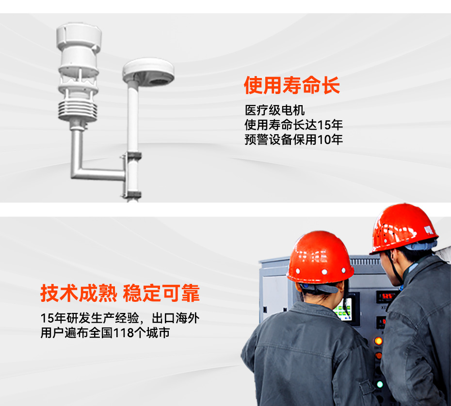 易造景區雷電預警系統,可實時監測景區20公里范圍內的雷電活動,并可提前30分鐘發出黃橙紅三級雷電警報,及時通知景區工作人員采取防雷應急預案,停止索道、纜車運行,引導疏散游客進入裝設防雷裝置的建筑物內,確保游客的生命安全。IP65預警探頭具有WF2防腐等級,可在各種環境條件下長期穩定運行,使用壽命長達10年以上。