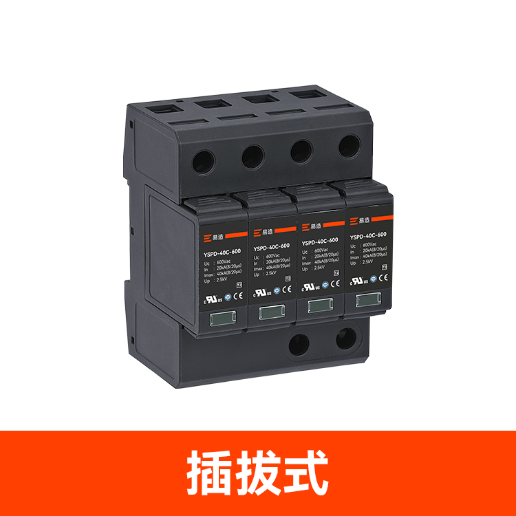 易造二級40kA插拔式浪涌保護器,最大持續工作電壓涵蓋60Vac-1500Vac,滿足世界各國電力系統單相和三相的防雷保護,擁有UL、TUV、CE、CQC等國內外質量認證,符合全球市場的最高質量和歐盟環保標準。