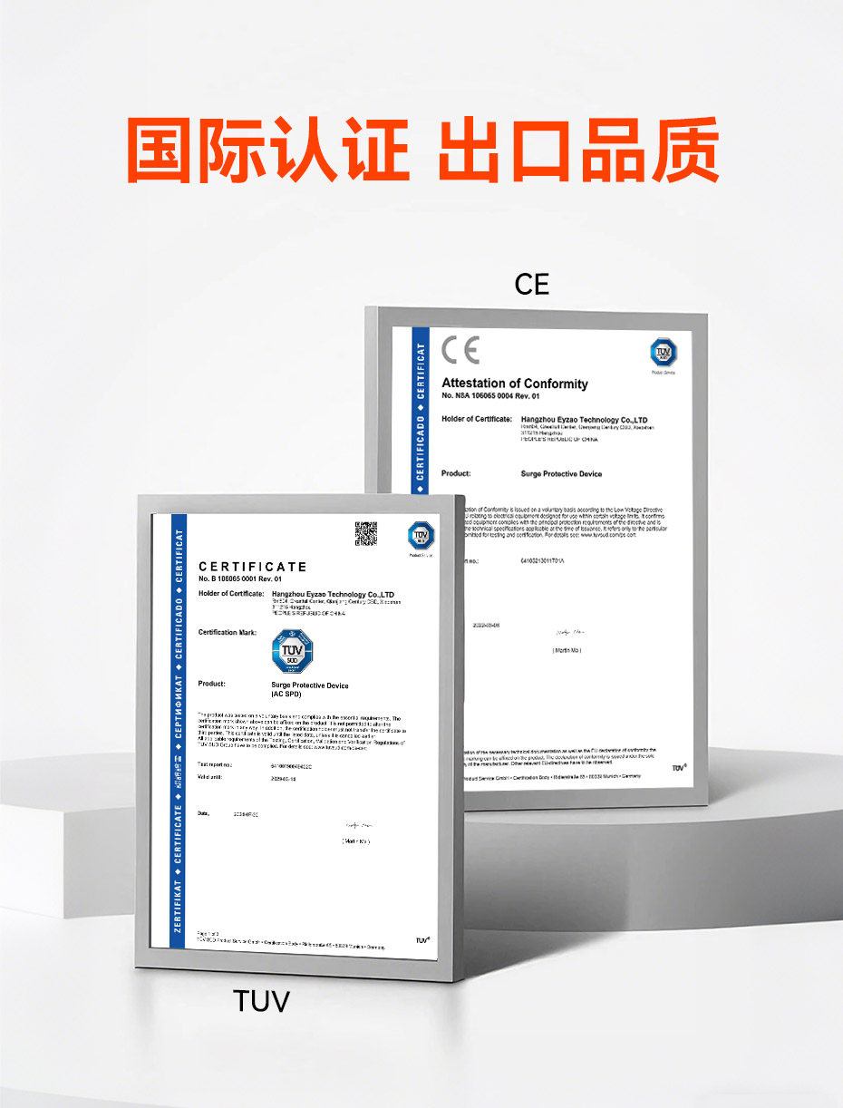 易造控制信號浪涌保護器已通過TUV、CE國際認證,符合RoHS歐盟環保標準,可替代進口品牌SPD,支持外貿出口定制。