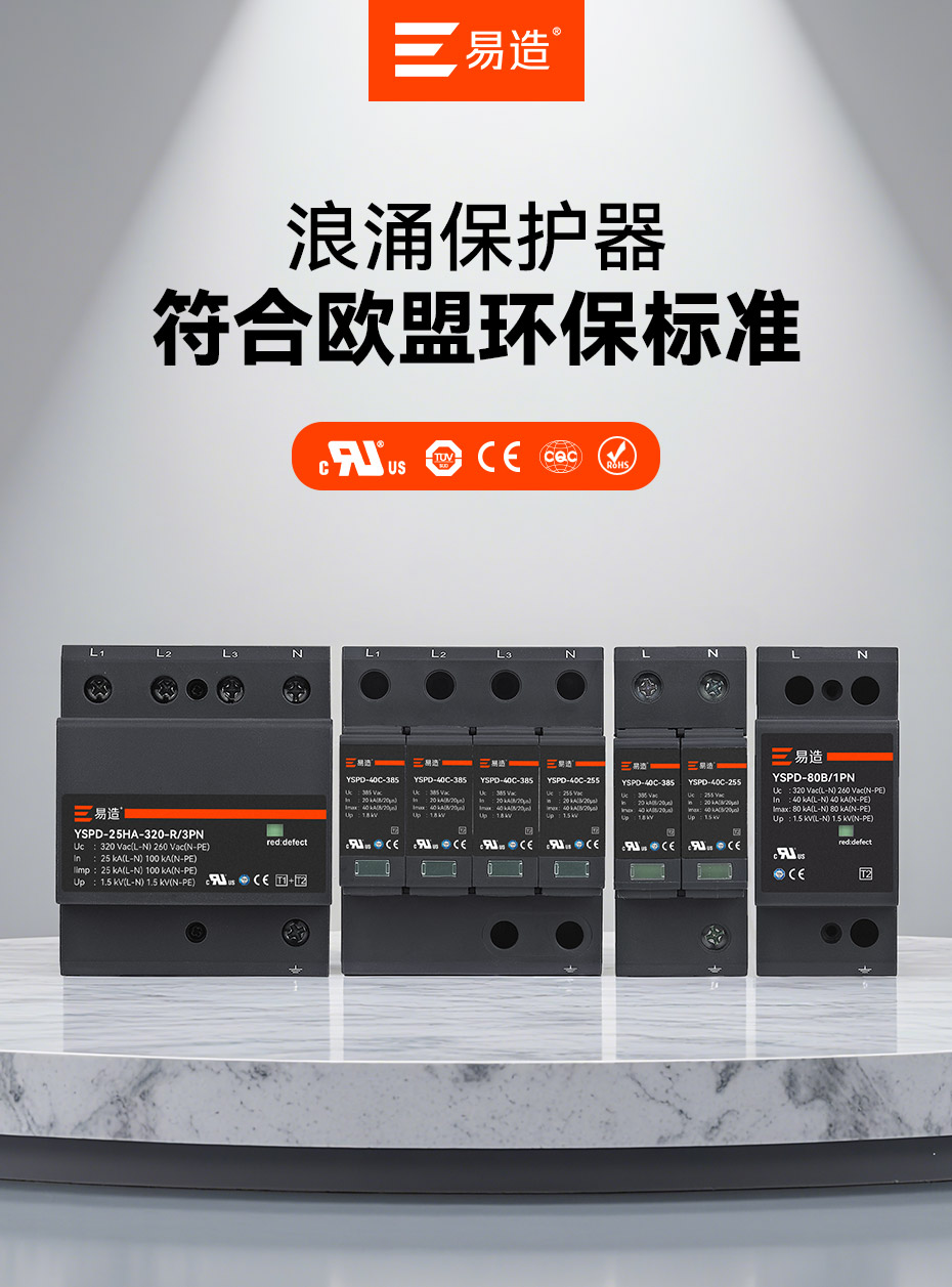 易造認(rèn)證浪涌保護器規(guī)格型號齊全,滿足全球各個國電力系統(tǒng)單相和三相的防雷保護,符合全球市場的最高質(zhì)量和歐盟環(huán)保標(biāo)準(zhǔn),可替代進口品牌SPD,支持外貿(mào)出口定制。