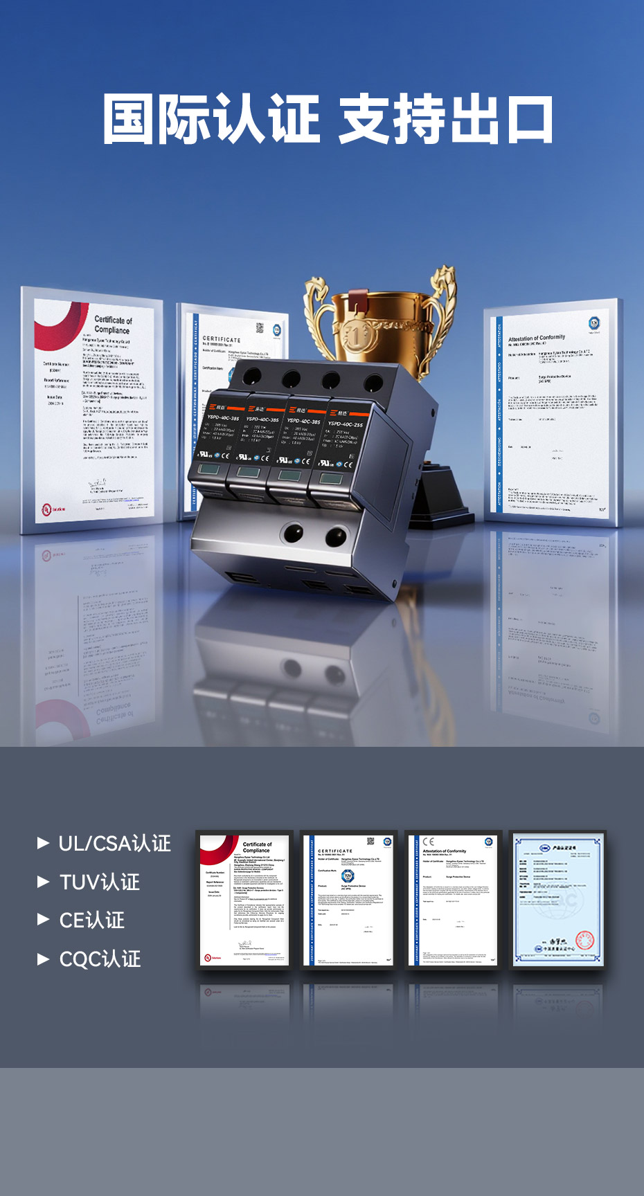 UL.TUV.CE.CSA.CQC認(rèn)證浪涌保護器